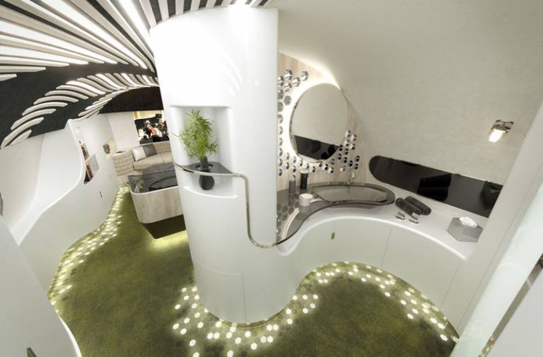 Beim neuesten Einrichtungs-Produkt von Airbus herrschen geschwungene Linien vor. Dabei geht es nicht nur um Ästhetik, sondern auch um einen Zweck: Die von der Natur abgeguckten Formen sollen Unternehmern, Topmanagern und VIPs ein angenehmeres Reiseerlebnis verschaffen. Die Entspannung soll derjenigen gleichen, die manin der Natur findet, so Airbus in einer Pressemitteilung.
