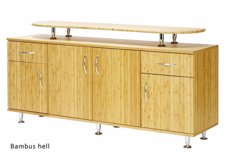 Dieses Sideboard ist ein Schmuckstück in Ihrem Büro oder Ihrem Zuhause. Optimierte Proportionen und schlichtes Design überzeugen und vermitteln einen gefälligen Gesamteindruck. Die Aufsatzplatte ist organisch geformt und nur aufgestellt. Sie kann beliebig verschoben und z.B. auch auf anderen Möbeln platziert werden.