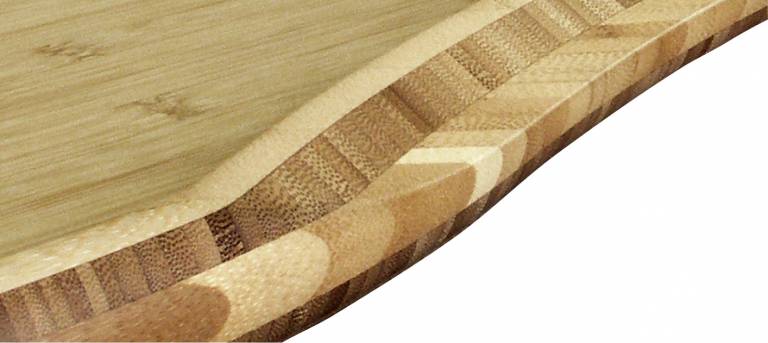 Deshalb verdient es auch eine achtsame Bearbeitung. Es möchte nicht einfach abgeschnitten und mit gerader Kante versehen, sondern eher wie eine Skulptur modelliert werden. So können architektonisch wohlproportionierte Platten entstehen, welche sich nochmals mit unterschiedlich gestalteten Profilkanten in Wirkung und Filigranität unterscheiden. Bambus altert in Würde. Wenn auch einmal in die Jahre gekommen, behält es seinen schönen, ästhetischen und natürlichen Farbton und wird nicht etwa weniger attraktiv, weil die Einwirkung von Sonne ihm beispielsweise einen Gelbstich verleiht. Auch Feuchte kann es gut wegstecken und reagiert darauf weder mit Schwinden noch mit Ausdehnung. Betrachtet man es noch aus technischer Sicht, weiß man, dass kein anderes natürliches Material mehr Elastizität, Härte und Festigkeit, bei gleichzeitig außergewöhnlich geringem Gewicht, besitzt.