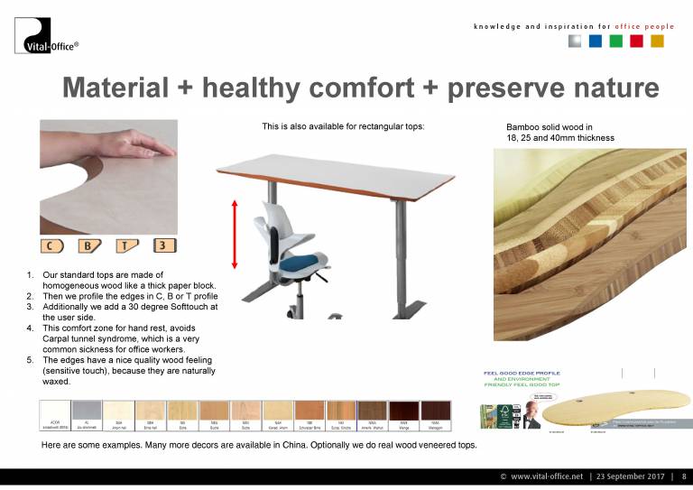 Schon lange mit uns auf dem Weg und immer wieder in sehr angenehmer Zusammenarbeit sind wir mit unserem Kunden Kunz-Schulze Immobilien. Sicher liegt das auch daran, dass Teile seiner Firmenphilosophie wie „Der Mensch steht bei uns im Vordergrund“ oder "wir leben unseren Beruf mit ganzem Herzen“ den unseren so ähnlich sind. Mit diesem Hintergrund machten wir uns an die Arbeit und entwarfen mit dem kreativen Team von Kunz Schulze Immobilien zusammen, ein sehr edles, modernes und lebendiges Büro, welches bis hin zu den eingesetzten Vital-Office (Möbel) Produkten das Firmenbild spürbar macht. "Die Qualität unserer Arbeitsumgebung bestimmt die Qualität unserer Arbeit" - Unsere ergonomischen Tische wurden aus einer Kombination von nachhaltigem massivem Bambus und Linoleum gefertigt, Die benötigten Aktenschränke erhielten eine schlichte Dekorfläche und wurden einseitig mit einer Bambusrahmen-/Akustik 3d-frames Konstruktion beplankt, um gleichzeitig ein angenehm raumakustisches Klima zu schaffen. Als zusätzliche schallabsorbierende Elemente wurden unsere Akustikmatten in Rollcontainern sowie Sichtschutzblenden der Schreibtische verarbeitet. Große Pflanztröge sorgen für ein gesundes Raumklima.