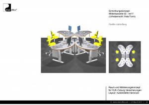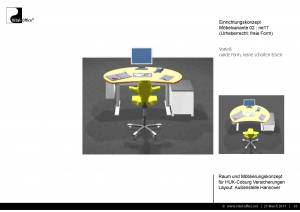 Tische und Mobiliar sollen in einheitlichen Farben und Materialien ausgeführt werden, die langfristig kombiniert werden können und etabliert sind. z.B.: