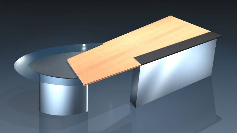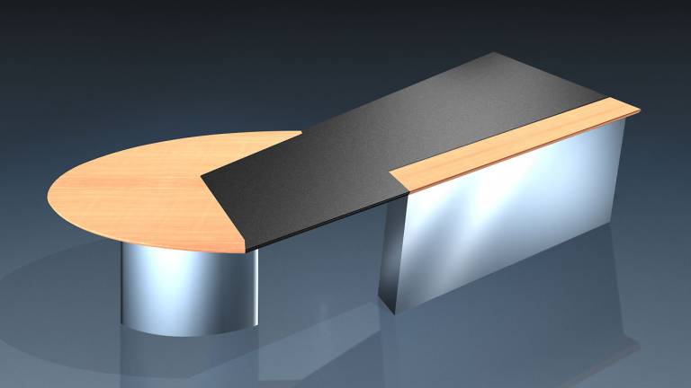 Mit unterschiedlichen Oberflächen und Farben für die drei Plattenteile, lassen sich individuelle Arbeitsplätze gestalten. Die Gliederung wirkt einem "massigen" Eindruck entgegen, so daß der Chefschreibtisch circon jet auch in kleinen Räumen einen hervorragenden Eindruck macht.