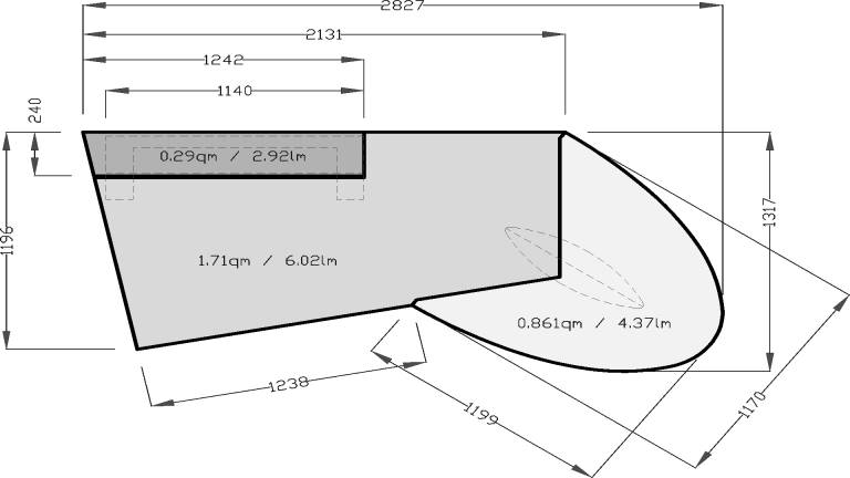 Tischplattenteile Aluminium strichmatt und Linoleum schwarz individuell