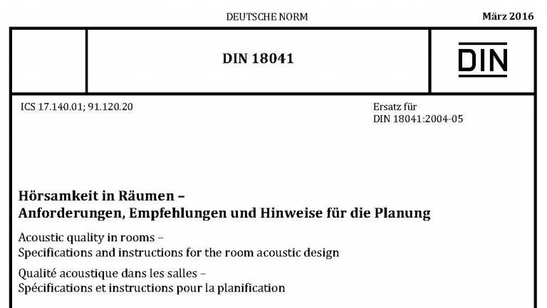 DIN 18041 Hörsamkeit in Räumen – Anforderungen, Empfehlungen und Hinweise für die Planung (Ausgabe März 2016)