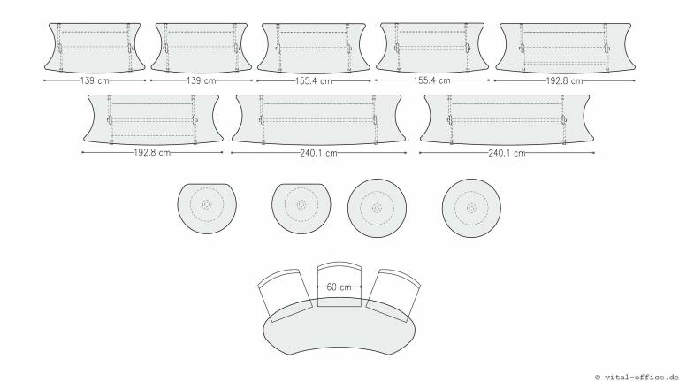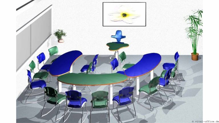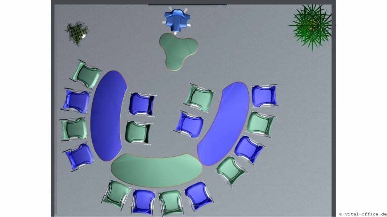 Die Tischform flexiconference ellipse ist eine elegante Variante speziell für kleinere Räume. Durch die spezielle Form lassen sich die Tische in jedem Winkel zueinander positionieren.