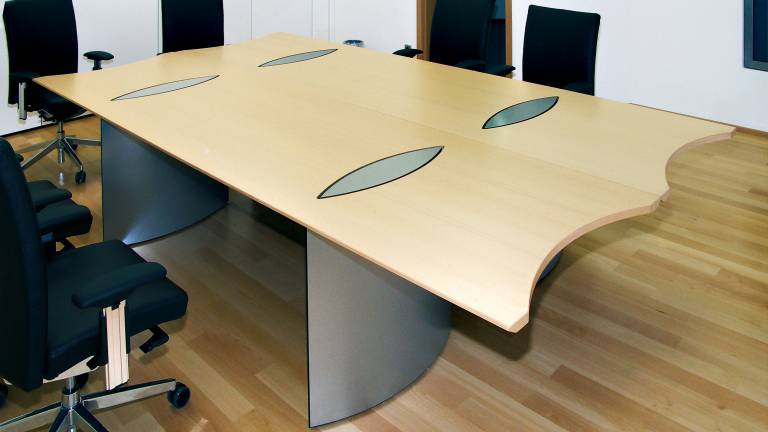 Exklusives Design. Die Konferenztische werden in handwerklicher Tradition aus hochwertigen Materialien gefertigt. Edle Furniere oder Massivhölzer, lackiertes Glas oder echter Stein. Mit passenden Akustikwänden und Medienschränken.