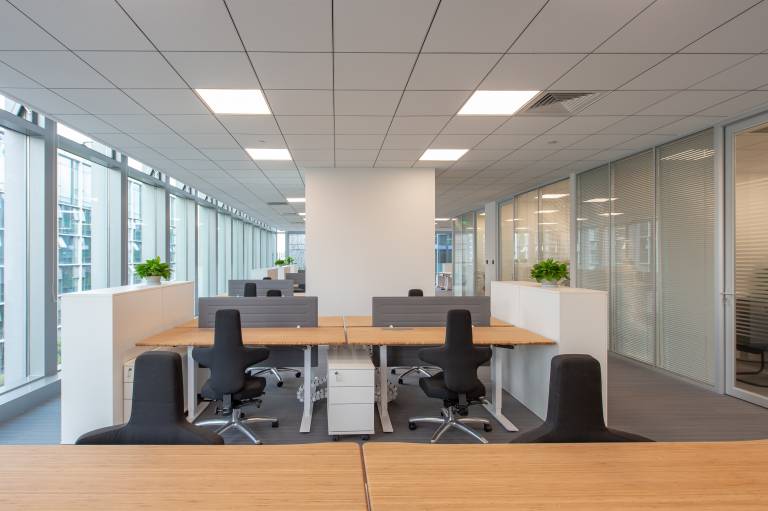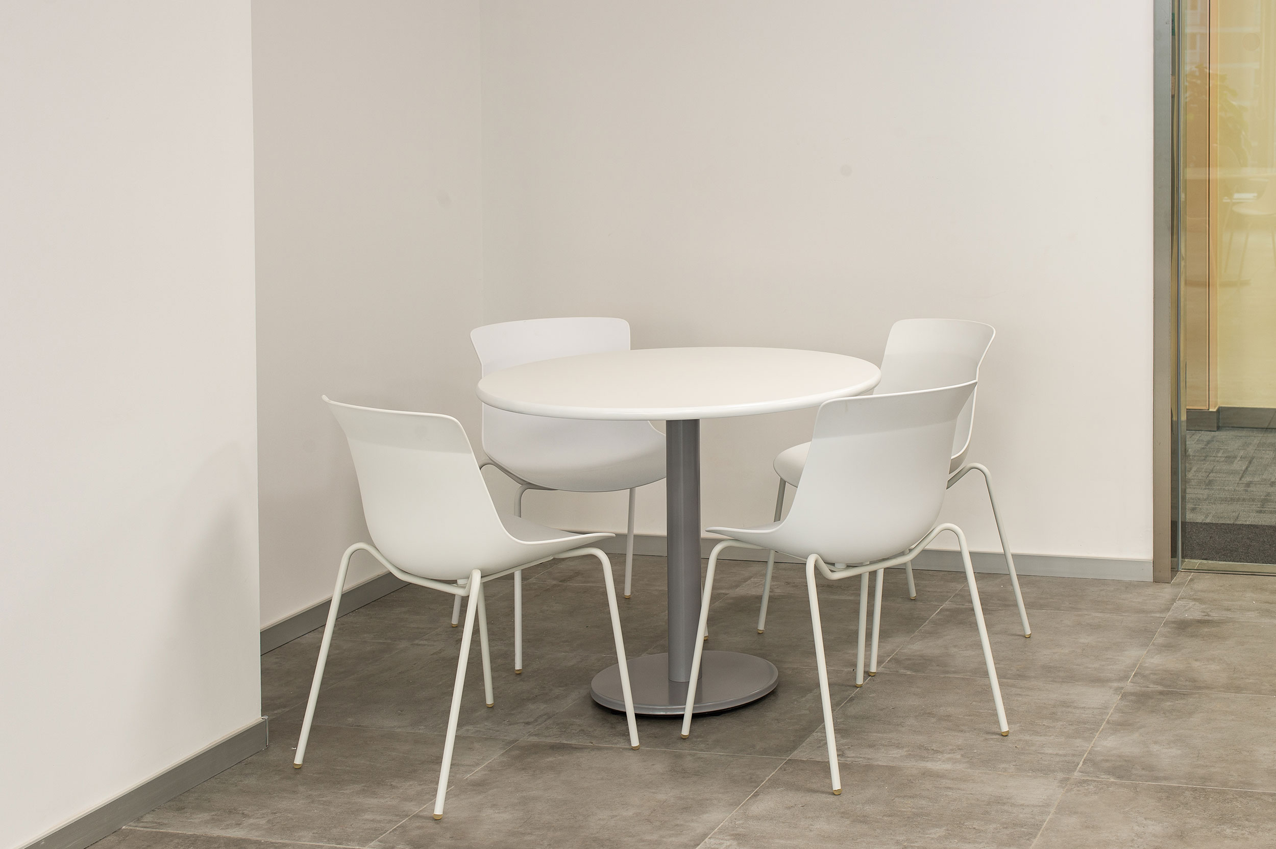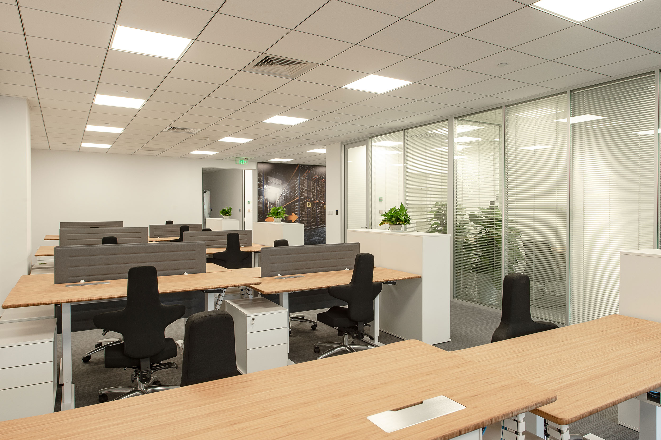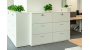 5 years after the furnishing of Jungheinrichs new factory, Vital-Office is again the supplier for Jungheinrichs new HQ and SO. Green bamboo desks are chosen again. Rectangular desk tops with height adjustable bases are added new. And the ergonomic saddle like WEY-chair was choosen again, but in 3rd generation technique and design. Electric installation and plug-in possibilities from top of table and from below table top was a special concern. Acoustic partitions are especially made for height adjustable stand-up desks. The acoustic panel is lifted always by the highest table top. This ensures, that all sticky notes on the screens are always available to the users on both sides.