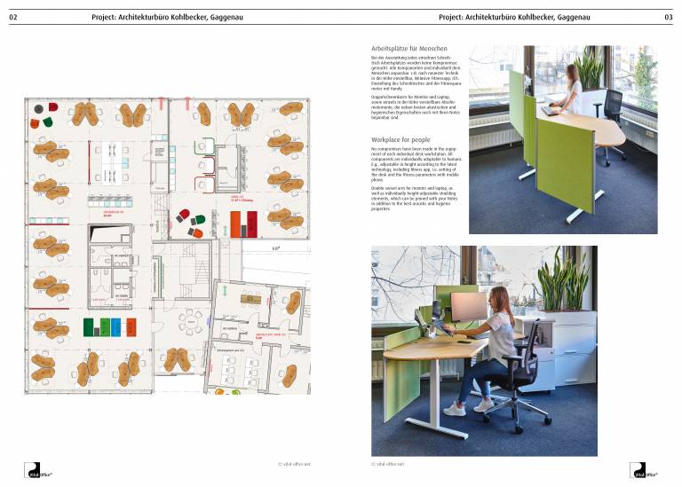 No compromises have been made in the equipment of each individual desk workstation. All components are individually adaptable to humans. E.g., adjustable in height according to the latest