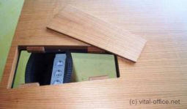 In Zeiten von Notebook und Handy ist es zudem erforderlich eine praktische Plug-in Möglichkeit von oben zu haben. So können Sie schnell und einfach Ihren Notebook und Ihr Handy von oben anschließen und deren Ladegeräte im Fuß verschwinden lassen.