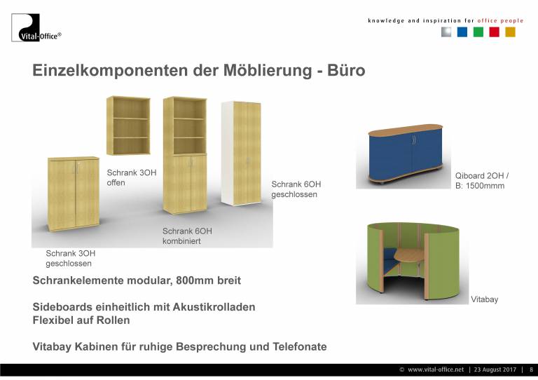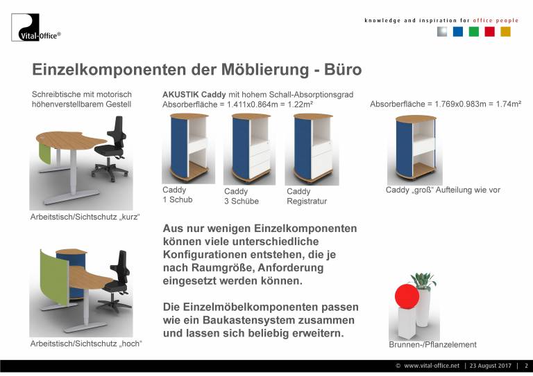 Die geplanten Akustikmöbel können wahlweise aus deutscher (Vital-Office GmbH) oder chinesischer Fertigung (Vital-Office Shanghai Ltd.) für Export geordert werden.