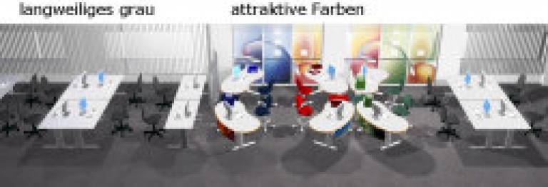 Ist es angesichts dieser einfachen Logik nicht fast pervers, wenn Büro-Lebensräume in allen möglichen Grauschattierungen eingerichtet werden? Auch wenn Grau in Grau gerade der absolute Trend wäre, sollte ein Trend, egal welcher Couleur, in den Büro-Lebensräumen nur bedingt eingesetzt werden. Im Büro hat grau in verschiedenen Schattierungen an Wänden, Decken und Möbeln nicht nur Auswirkungen auf das Gemüt, sondern darüber hinaus auf die Kreativität, den Fokus und die Produktivität, vom einfachen Sachbearbeiter bis zum Geschäftsführer.