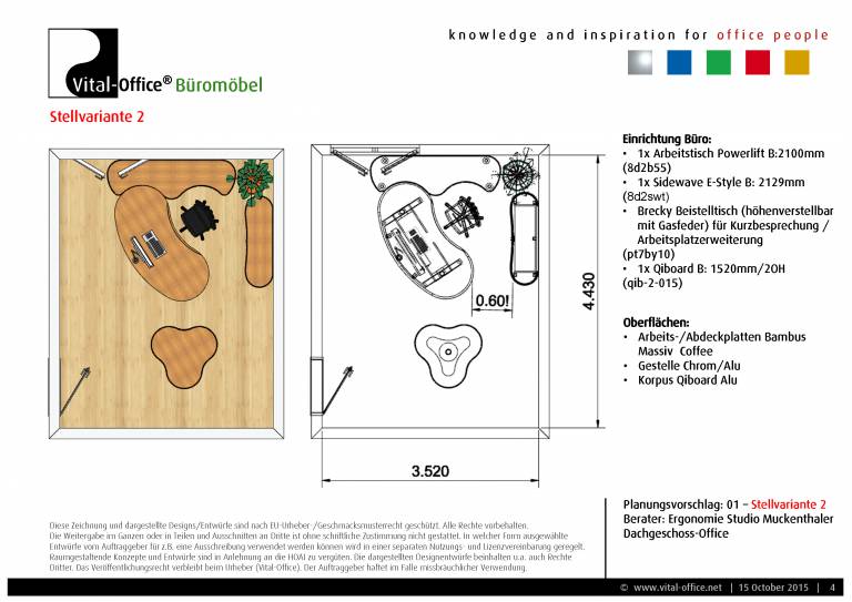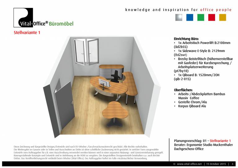 Sie erfolgen unter selbstverständlicher Berücksichtigung der Tätigkeitsfelder, der Arbeitsanforderungen, des Budgets, der Raumgeometrie, der Flächen- und Stauraumanforderungen, der gesetzlichen und berufsgenossenschaftlichen Vorschriften, sowie der zeitlichen Umsetzungsspannen.