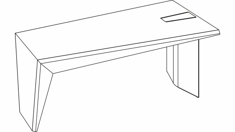 Klare Struktur, sinnlich ansprechend. Eine künstlerisch gestaltete Skulptur als Besprechungstisch oder Schreibtisch. Platte und Fuß als geschlossene Einheit. Außen, Oben und Innen gleich furniert, mit facettierten Wangen in verschiedenen Oberflächen.