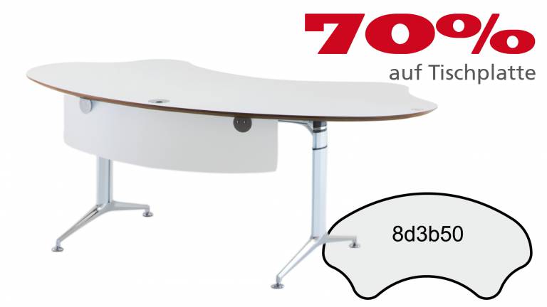 Das Abrunden der Tischplatten ermöglicht eine völlig freie Platzierung der Arbeitsplätze, die sich auch schwierigen räumlichen Gegebenheiten anpasst. Es führt zu: Gewinn von Flächeneffizienz, Stressreduzierung durch optimierte Privatsphäre, Große Flexibilität in der Anordnung der Tische und Gestaltung von Arbeitsgruppen, Enorme Planungsvielfalt und Reserve für spätere Arbeitsplatzerweiterungen. Ein langlebiges Konzept, optimiert für Umstrukturierungen, Umbauten und Umzüge in andere Räume. Ein weiteres positives Gestaltungsmerkmal hinsichtlich ästhetischer Raumgestaltung ist die unterschiedlich optische Wirkung (Täuschung):Bei gleicher Größe werden runde Formen kleiner wahrgenommen als Eckige.