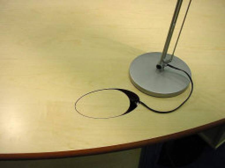 Hinter der Formteilprotektion ist ein abgeschirmter Kabelschacht, der bequem von oben erreichbar ist. Durch sogenannte e-eyes, das sind Kabeldurchführungen in Plattenmaterial, groß genug um durchzugreifen und damit Handy oder Laptop bequem von oben anzuschließen.