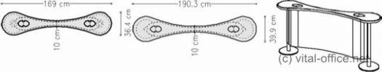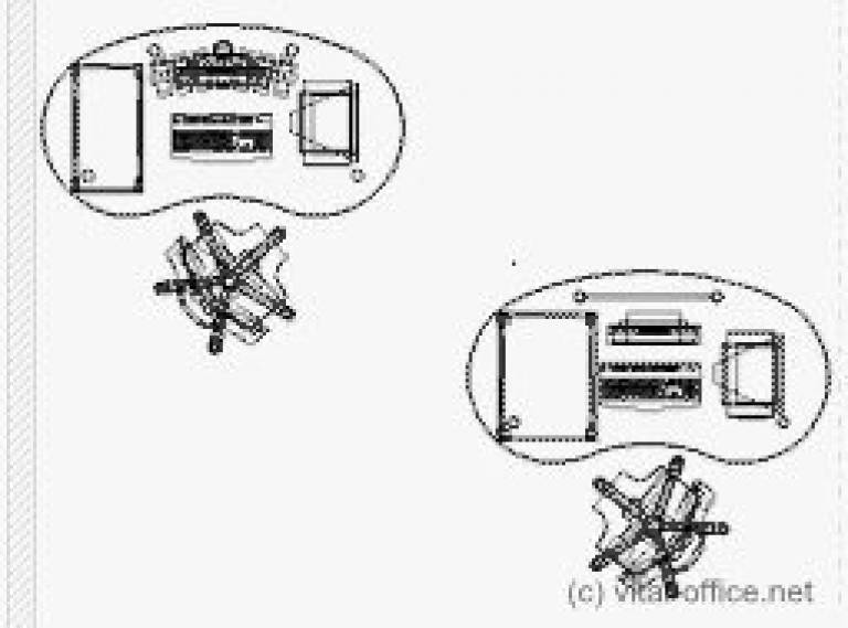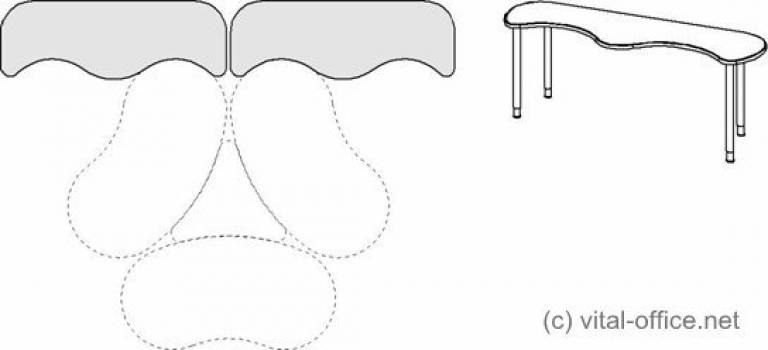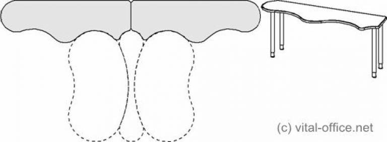 Mit Bürocontainer in Schmalversion (Tisch links unten) oder Standardgröße (Tisch rechts unten).