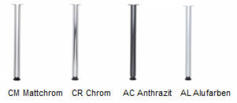 Der Tischfuß setzt auf dem Container auf. Mittels eines auf dem Container frei montierbaren Drehbolzen wird ein gekürzter Fuß mit Höhenversteller*** gelagert.