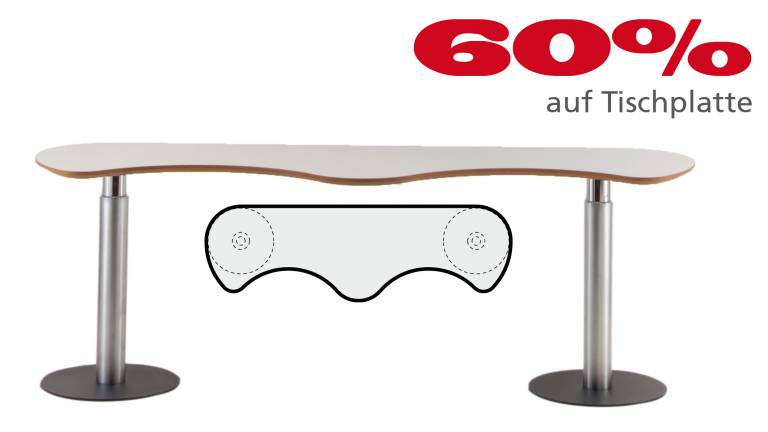 Das Abrunden der Tischplatten ermöglicht eine völlig freie Platzierung der Arbeitsplätze, die sich auch schwierigen räumlichen Gegebenheiten anpasst. Es führt zu: Gewinn von Flächeneffizienz, Stressreduzierung durch optimierte Privatsphäre, Große Flexibilität in der Anordnung der Tische und Gestaltung von Arbeitsgruppen, Enorme Planungsvielfalt und Reserve für spätere Arbeitsplatzerweiterungen. Ein langlebiges Konzept, optimiert für Umstrukturierungen, Umbauten und Umzüge in andere Räume. Ein weiteres positives Gestaltungsmerkmal hinsichtlich ästhetischer Raumgestaltung ist die unterschiedlich optische Wirkung (Täuschung):Bei gleicher Größe werden runde Formen kleiner wahrgenommen als Eckige.