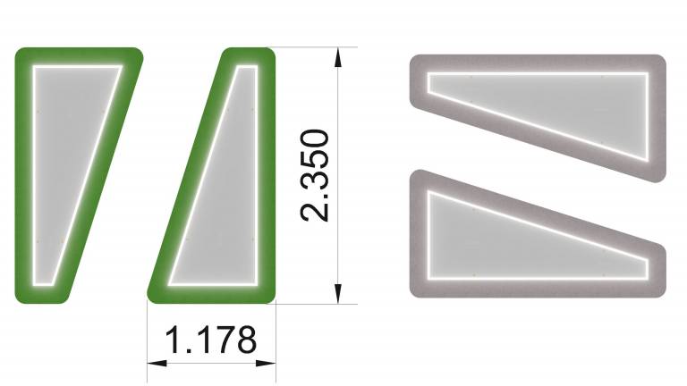 Die vitAcoustic Trapez Deckensegel sind 2-lagig aufgebaut und haben eine Gesamtdicke von 50mm. Durch den Überstand der unteren Absorberlage wirken sie dennoch grazil und dezent.