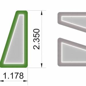2. gerade Baffel 2000x81x390mm in organischer Designform mit beidseitig geschwungenen Blenden.