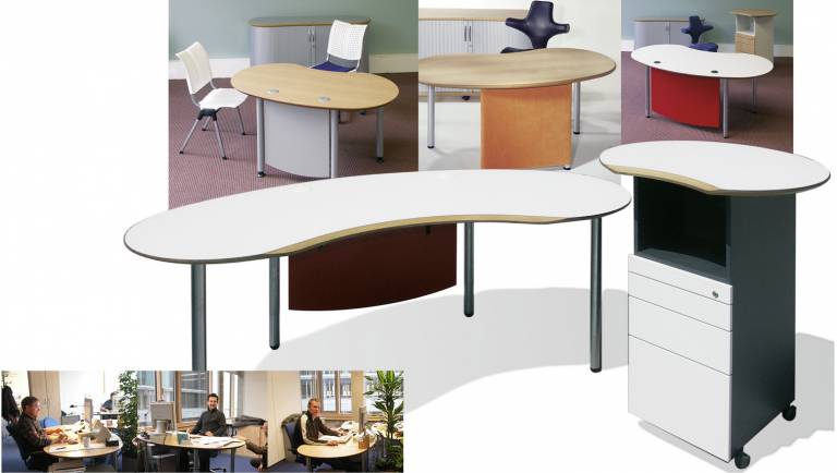 Das Abrunden der Tischplatten ermöglicht eine völlig freie Platzierung der Arbeitsplätze, die sich auch schwierigen räumlichen Gegebenheiten anpasst. Es führt zu: Gewinn von Flächeneffizienz, Stressreduzierung durch optimierte Privatsphäre, Große Flexibilität in der Anordnung der Tische und Gestaltung von Arbeitsgruppen, Enorme Planungsvielfalt und Reserve für spätere Arbeitsplatzerweiterungen. Ein langlebiges Konzept, optimiert für Umstrukturierungen, Umbauten und Umzüge in andere Räume. Ein weiteres positives Gestaltungsmerkmal hinsichtlich ästhetischer Raumgestaltung ist die unterschiedlich optische Wirkung (Täuschung):Bei gleicher Größe werden runde Formen kleiner wahrgenommen als Eckige.