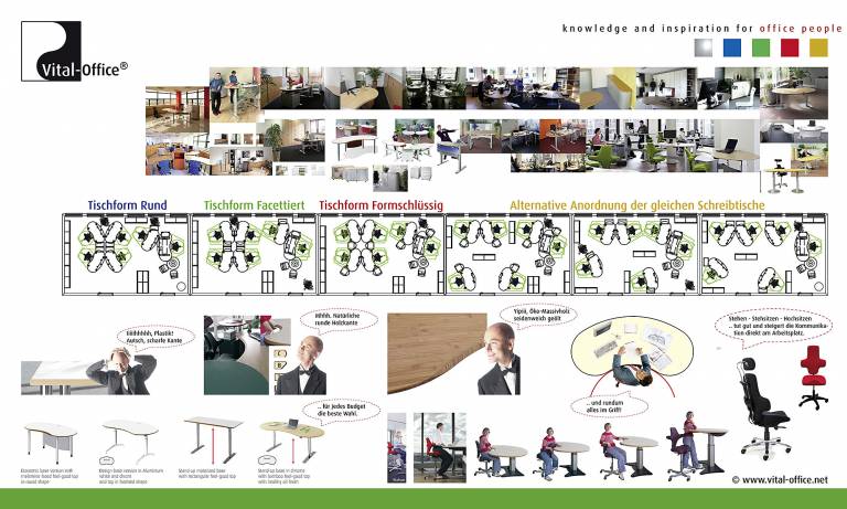 Vital-Office Design Produkte z.B. Büromöbel, Bürostühle und Akustik Absorber, sind aus der Entwicklung von Büroraumkonzepten hervorgegangen. Diese Design Möbel erfüllen Anforderungen, die in den Bürokonzepten definiert sind. Die Komplexität der menschlichen und sozialen Komponente stellt dabei höchste Anforderungen an unsere Designer.